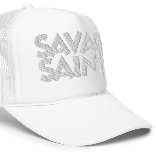 SAVAGE SAINTS (TOON FONT) / FOAM TRUCKER HAT (WHITE-OUT)