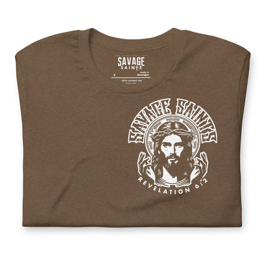CROWNED TO CONQUER [REV 6:2] BROWN TEE